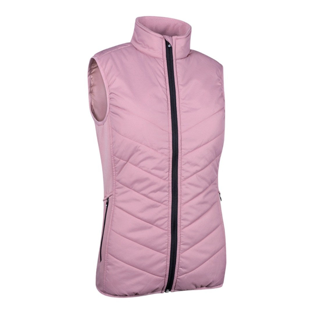 Stay protected from the cold with the Sunderland Ladies Tania Golf Gilet. Crafted with a wind and showerproof shell, its ultra-lightweight construction has a thermally efficient down filling that ensures warmth and breathability. Its soft-brushed, stretch side panels allow for easy movement, while the stretch fabric-bound hems and armholes seal out moisture. Enjoy increased weather resistance and a slimmer silhouette with its water-repelling ripstop shell and flattering chevron design.