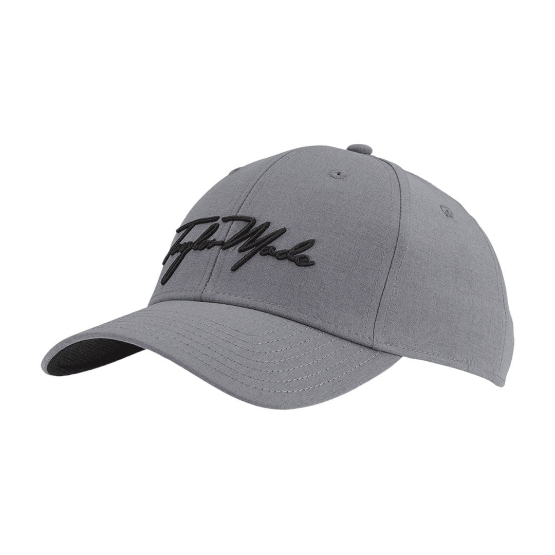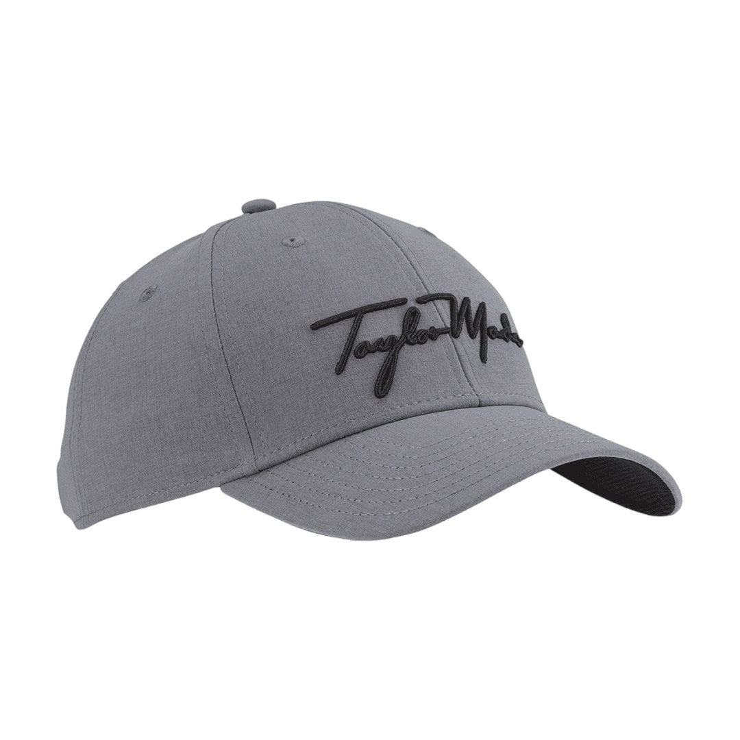 The TaylorMade Script Seeker Golf Cap is an outstanding cotton cap that features a ventilated crown for air flow and moisture wicking performance. The Taylor Made logo is embroidered on the front of the cap.