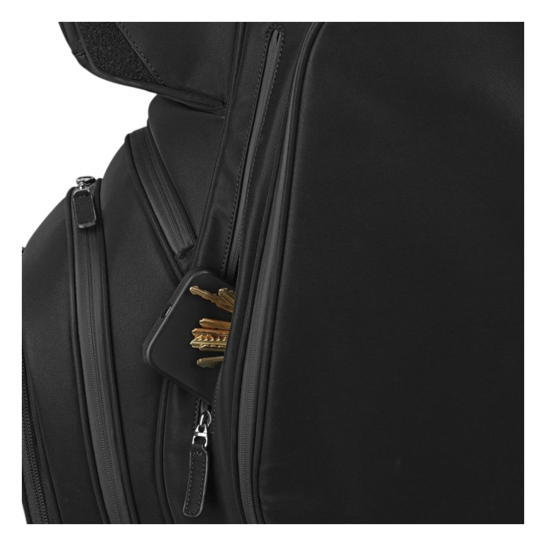 Ride in style and comfort with the TaylorMade Signature Golf Cart Bag. The 14-way top and full length dividers keep your clubs organized and secure, while the 11 pockets provide ample storage for all your essentials. With a weather resistant matte PU leather shell, magnet access pocket, and integrated cooler, this bag has everything you need for a memorable round.
