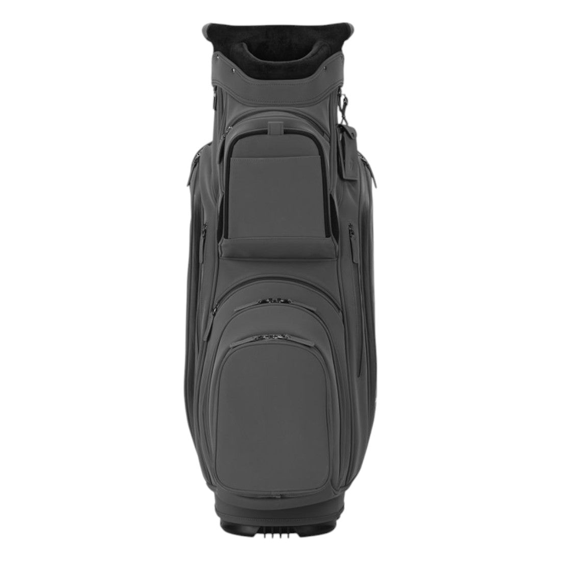 Ride in style and comfort with the TaylorMade Signature Golf Cart Bag. The 14-way top and full length dividers keep your clubs organized and secure, while the 11 pockets provide ample storage for all your essentials. With a weather resistant matte PU leather shell, magnet access pocket, and integrated cooler, this bag has everything you need for a memorable round.