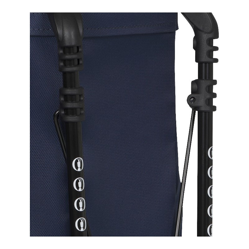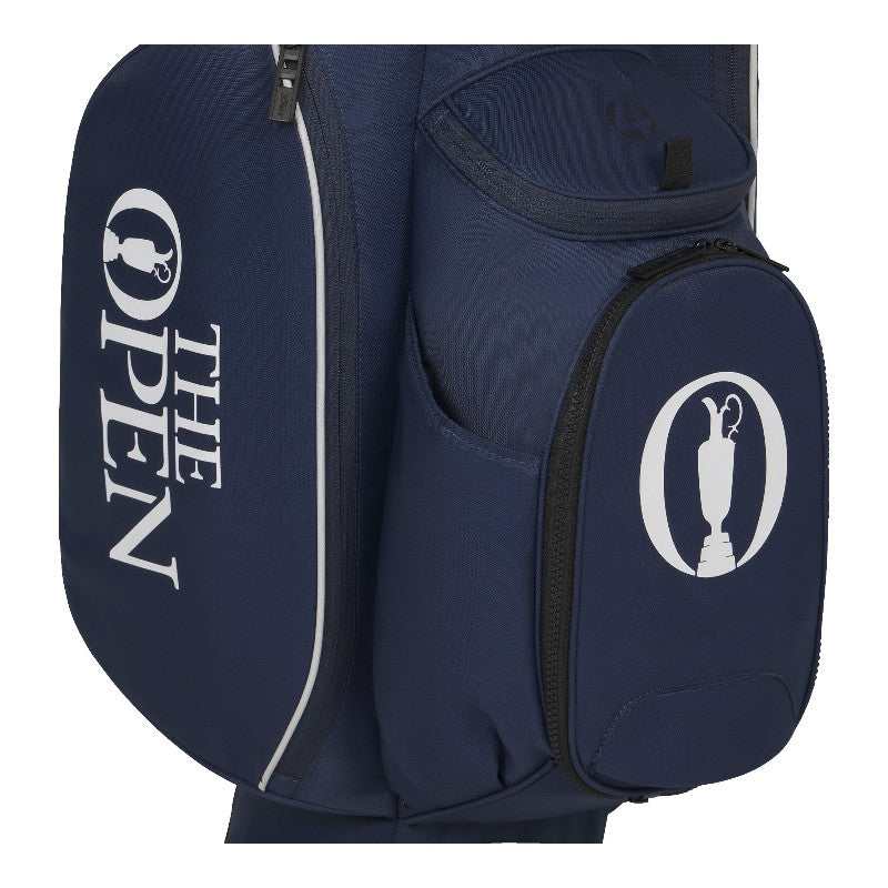 The Titleist The 153rd Open Players 4 Stand Bag TB25SX4 combines premium materials with functional design, featuring durable high-grade aluminum legs adorned with Open Championship logos.