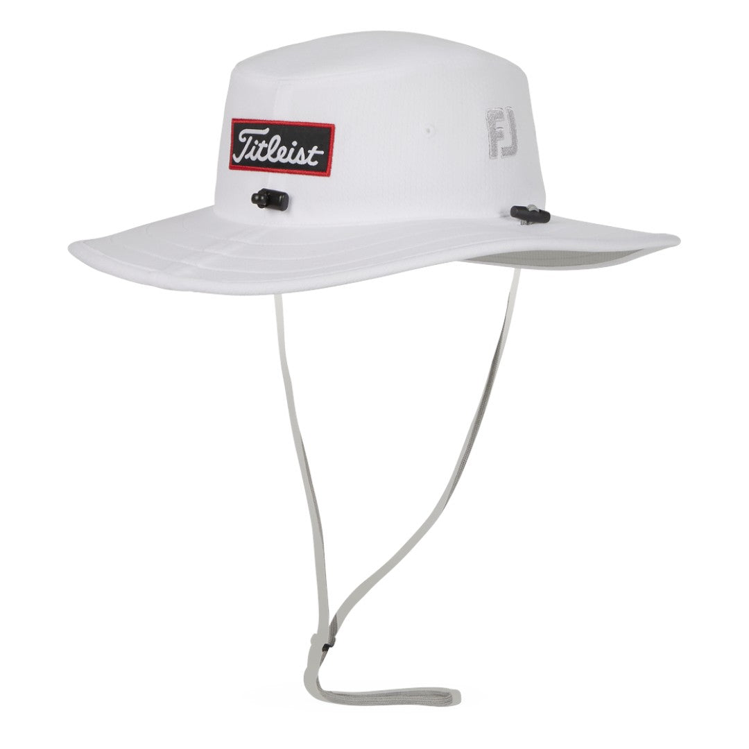 This Titleist Tour Aussie Golf Hat is designed for performance on the course. Made with stretch material, it features anti-microbial and moisture-wicking properties to keep you comfortable. The wide brim provides excellent sun protection, while the adjustable chin strap ensures a secure fit.