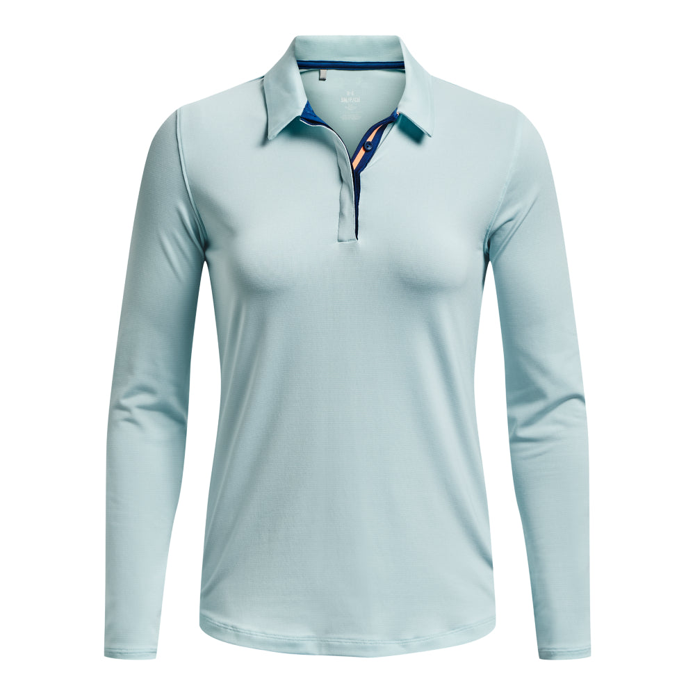 Under Armour Ladies Zinger Microstripe LS Golf Polo Shirt 1373637 | Fuse Teal/White 469