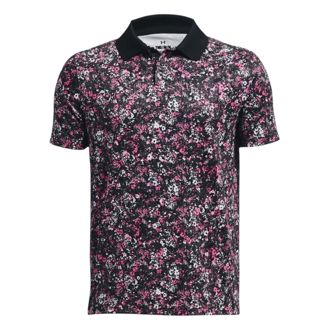 Junior Under Armour Performance Floral Speckle Golf Polo Shirt 1377348 | Black/Rebel Pink 001