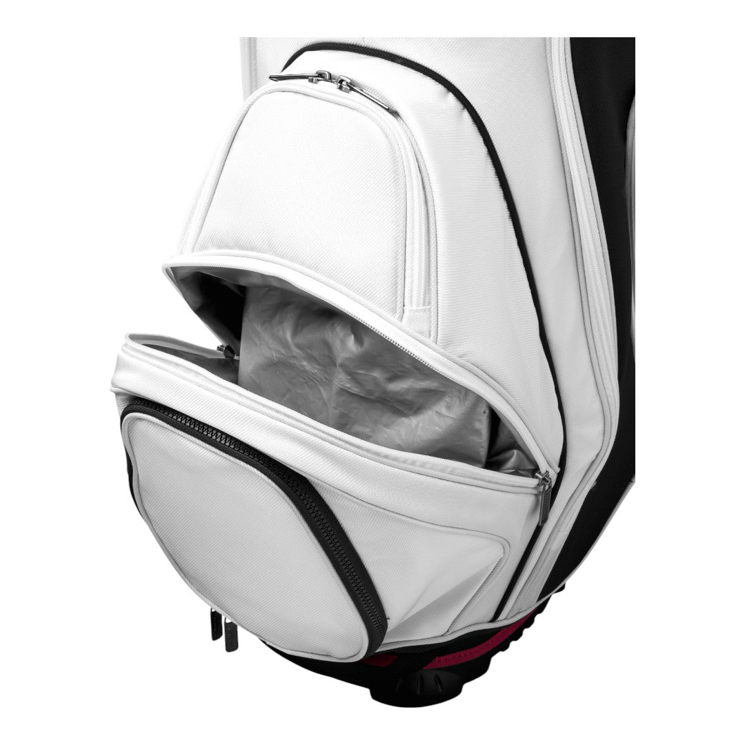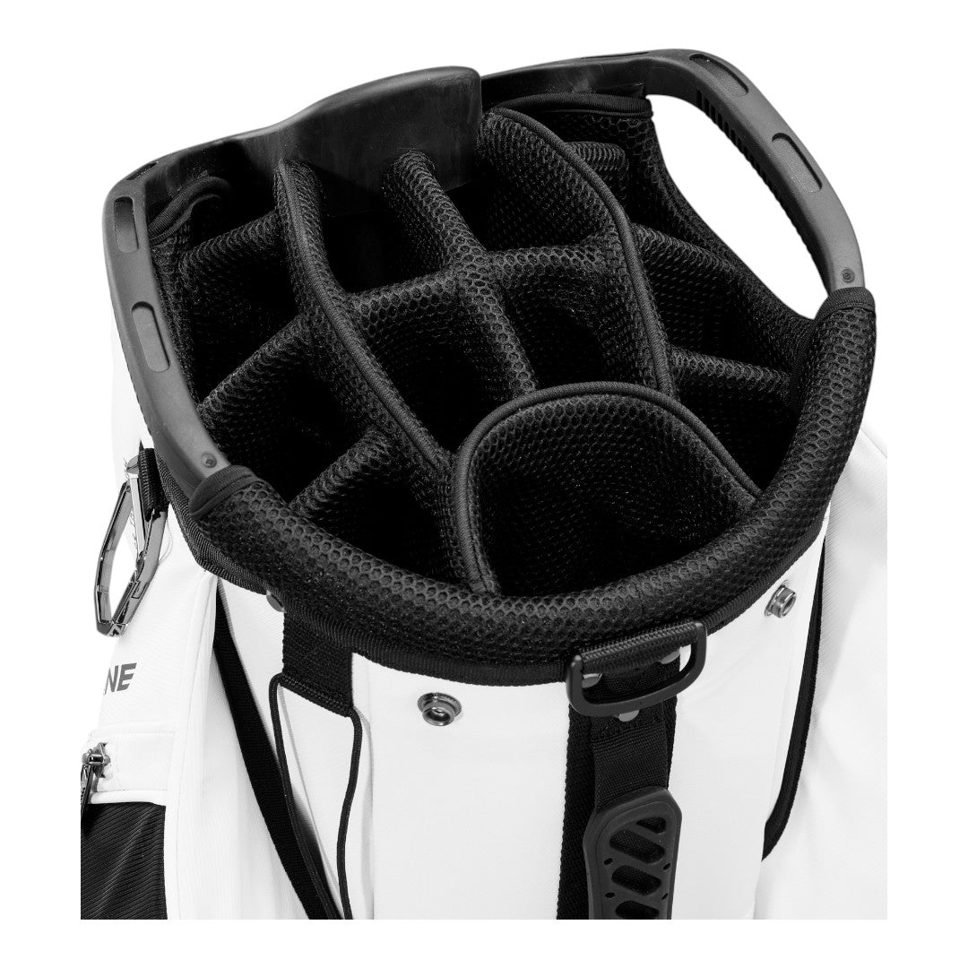 The Wilson Alpine Golf Cart Bag is designed for serious golfers seeking top-tier organization and convenience. Featuring 14 full-length dividers, it ensures your clubs remain tangle-free and easily accessible throughout your round. A spacious ice pocket keeps your beverages chilled, enhancing comfort on the course. Engineered for riding carts, this bag combines functionality with durability, making it an essential companion for elevating your game.